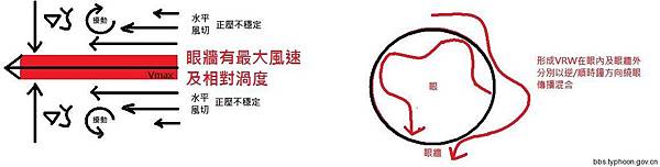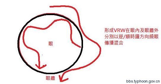 再來,伴隨颱風發展風眼生成的同時,眼牆風速加大形成正壓不穩定並伴隨VRW生成: